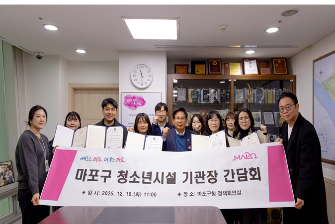 À̹ø °£´ãȸ´Â ¸¶Æ÷±¸Ã»¼Ò³â»ó´ãº¹Áö¼¾ÅÍ, ¸¶Æ÷±¸Çб³¹Ûû¼Ò³âÁö¿ø¼¾ÅÍ, ±¸¸³¸¶Æ÷û¼Ò³â¹®ÈÀÇÁý, ±¸¸³¸Á¿øÃ»¼Ò³â¹®È¼¾ÅÍ µî °ü³» û¼Ò³â ½Ã¼³ 4°÷ÀÌ 2025³â °¢Á¾ Á¤ºÎ °ø¸ð¿Í °æÁø´ëȸ¿¡¼ ¸ðµÎ Àå°ü»óÀ» ¼ö»óÇÏ¸ç ¡®Ã»¼Ò³â ½Ã¼³ 4°ü¿Õ¡¯À» ´Þ¼ºÇÑ °ÍÀ» ±â³äÇϱâ À§ÇØ ¸¶·ÃµÆ´Ù.